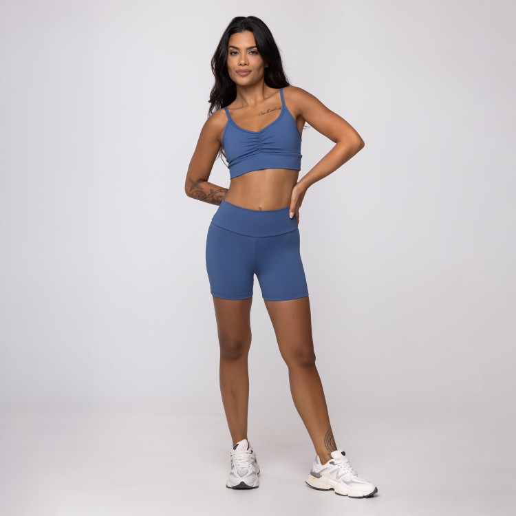 • Top Azul Luxo Athletic Franzido em Poliamida