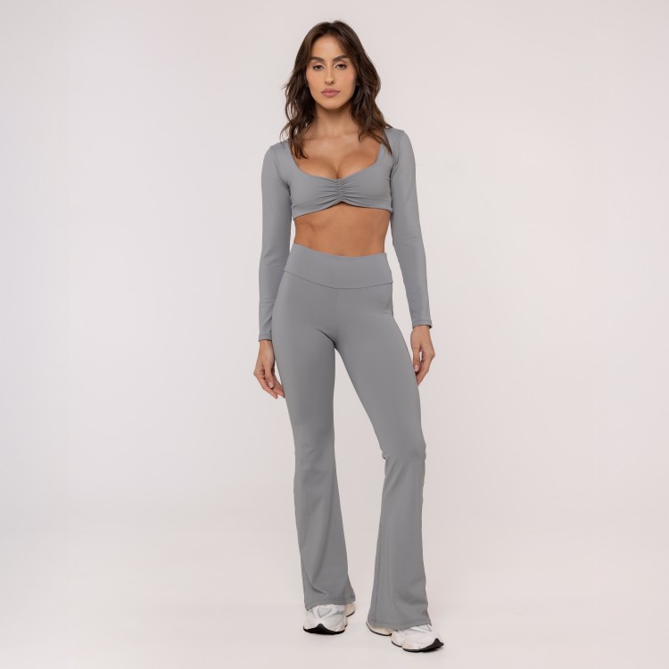 Cropped Cinza Lua Nova Manga Longa Classic Com Franzido Frente