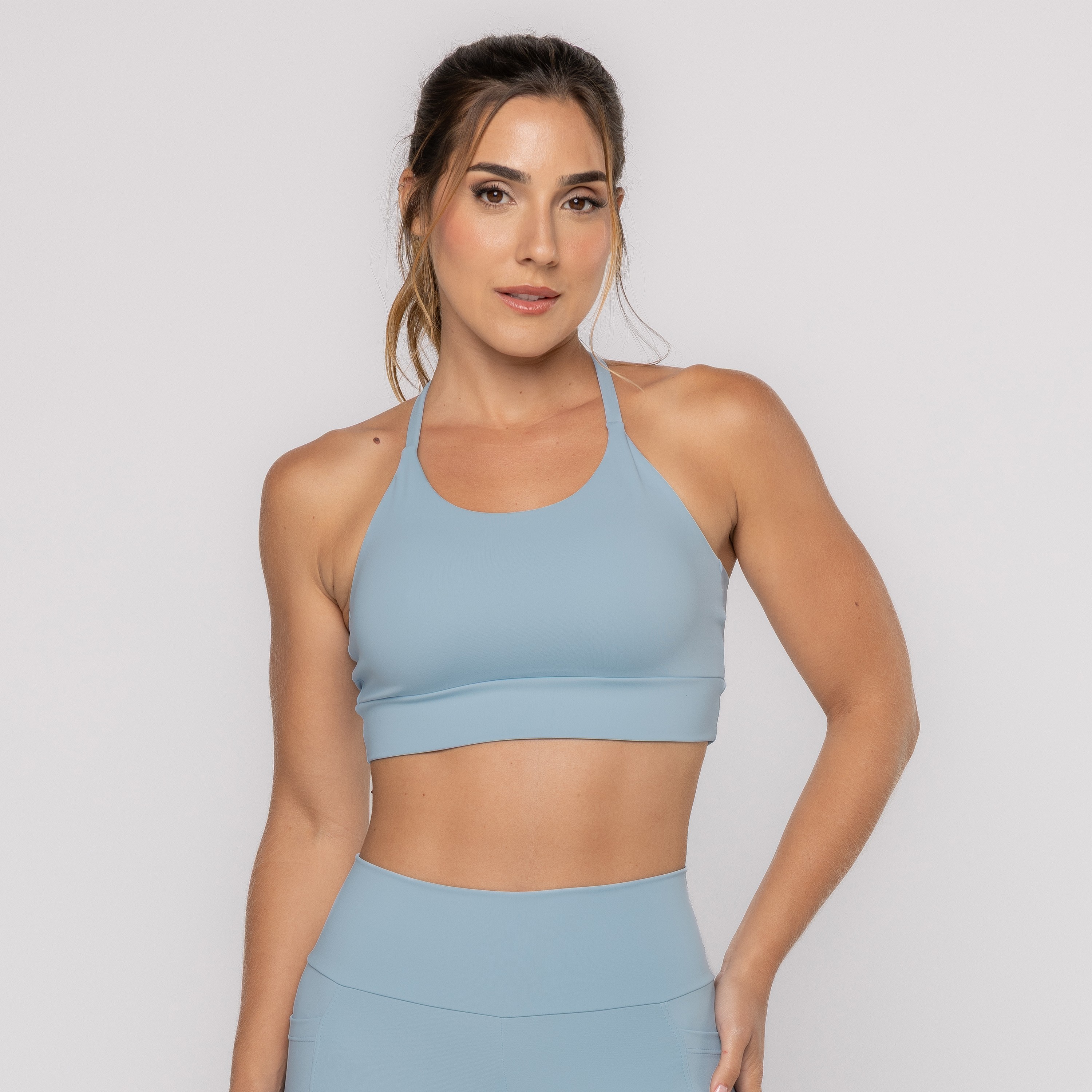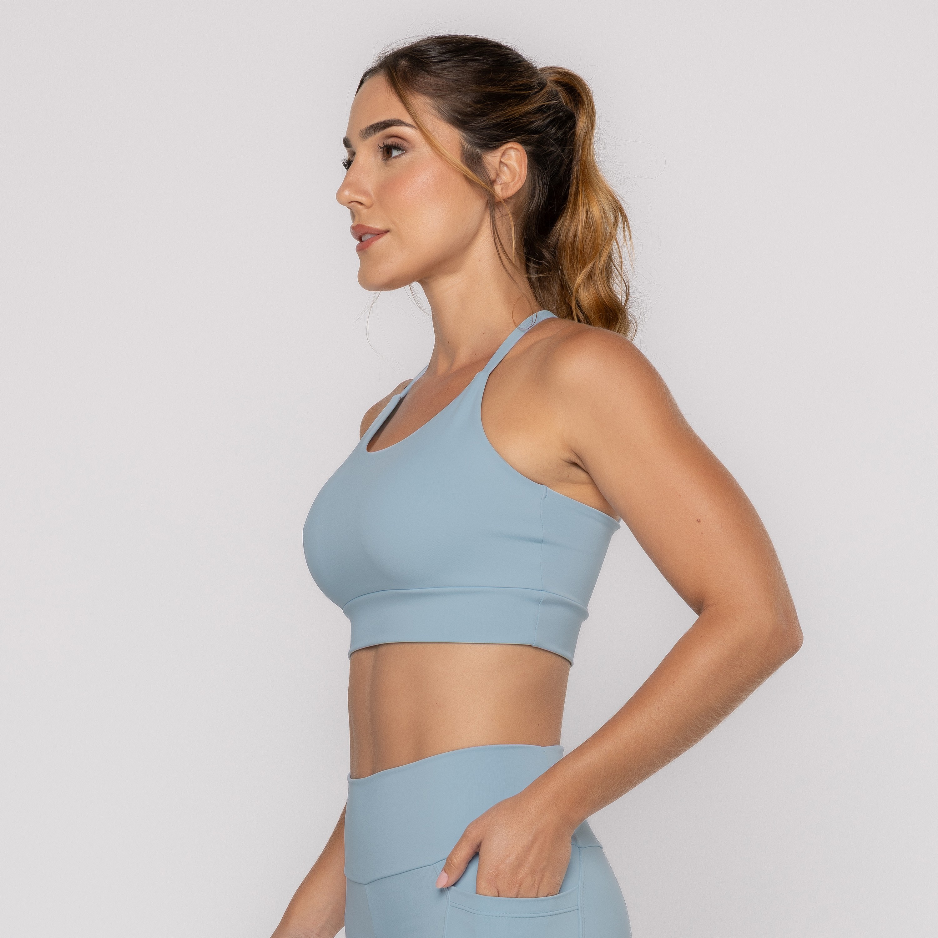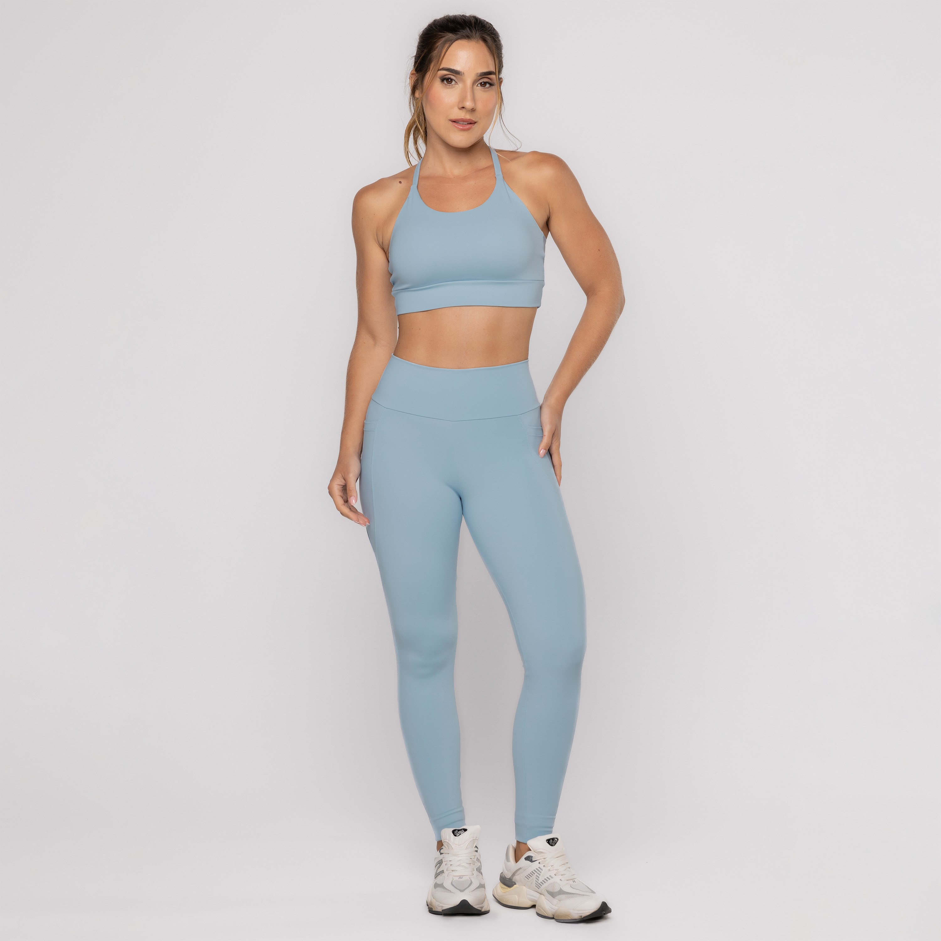 Calça Legging Azul Bem Estar Com Bolso Laterais E Nas Costas