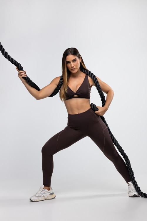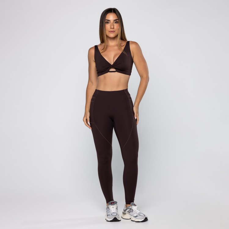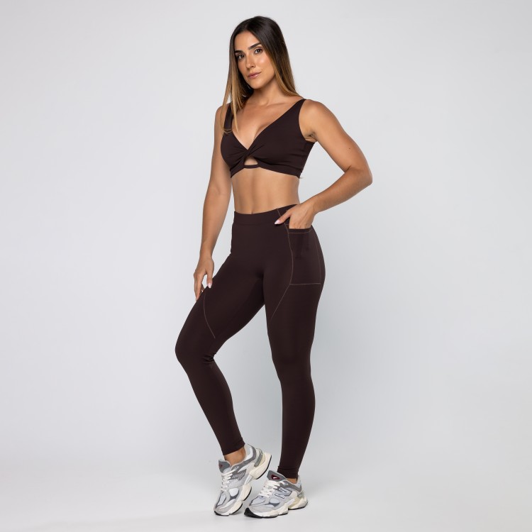 • Calça Legging Force Com Bolsos Laterais Pau Brasil
