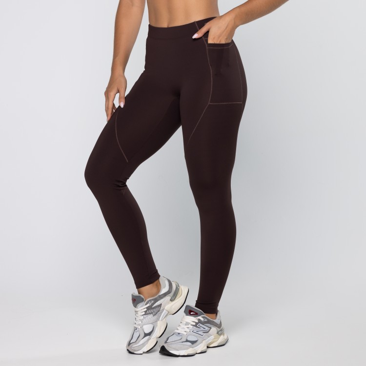 Calça Legging Force Com Bolsos Laterais Pau Brasil