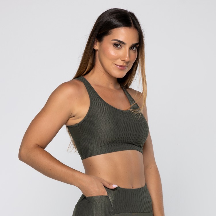 • Top Force Texturizado Com Decote Assimétrico Verde Pinho