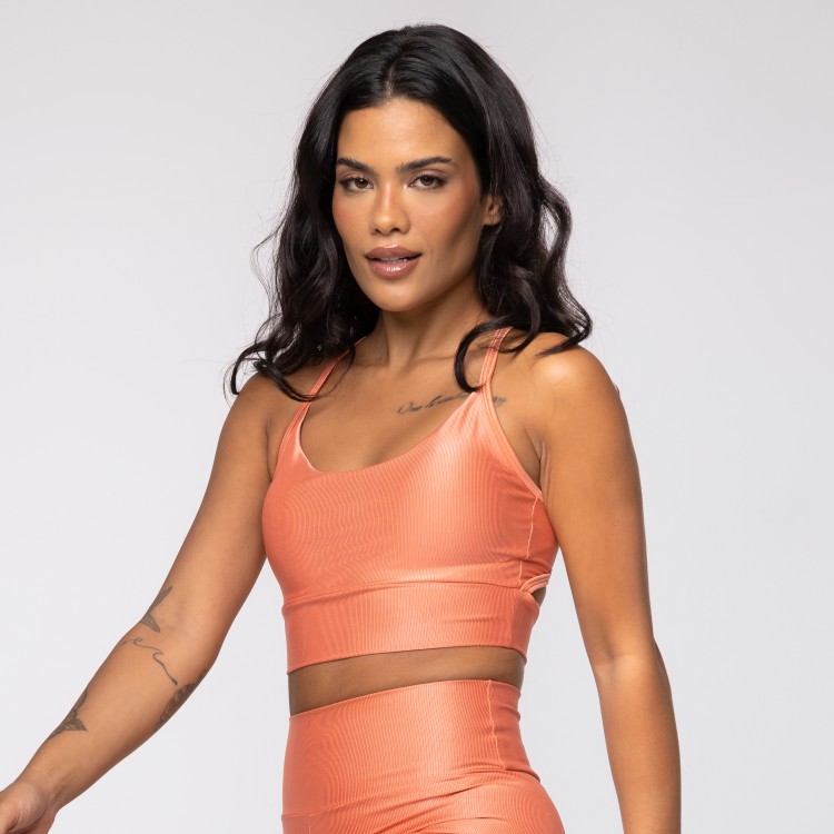 • Top Laranja Claro Wonder com Recorte nas Costas